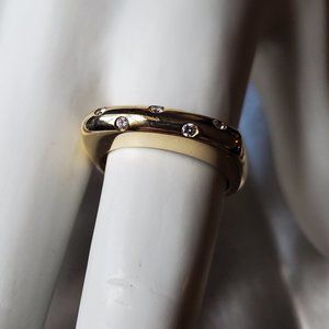 This ring is made 18 K yellow gold. “750”being stamped onto the inner side of it.