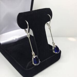 Beautiful 2" 6ctw Sapphire Earrings in Sterling Silver Lab Grown Sapphires