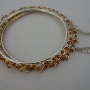 Beautiful 2 Bracelet for Girls Diameter 2.5" White Metal & Brown Color Beads. Vintage
