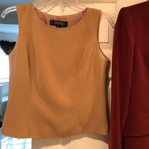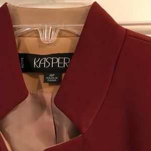 This may have been worn two times. It’s in perfect condition. The jacket’s a burgundy color.. The top is sleeveless and zips down one side under arm.. Goes great with black or cream colored pants or skirt for the office. Size 4P and it’s all beautifully lined....