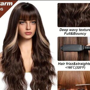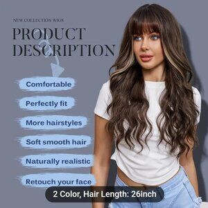 26 inch soft wavy synthetic wig with bangs