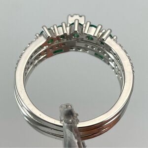 Beautiful 3 Band Stacker Set Green Emerald White Diamond CZ Silver Plated Ring