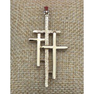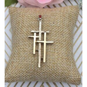 Beautiful 3 Cross 2" Pendant in Textured & Smooth Gold Tone Religious Gift