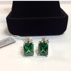 Beautiful 3ctw Emerald & White Sapphire Earrings Emerald Cut Emerald Earrings