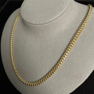 This beautiful 18-inch Italian gold Cuban link chain is a must-have for any jewelry lover! Made with 14k yellow gold over solid 925 sterling silver, this chain has a total weight of 28.53 grams and is of the highest quality.