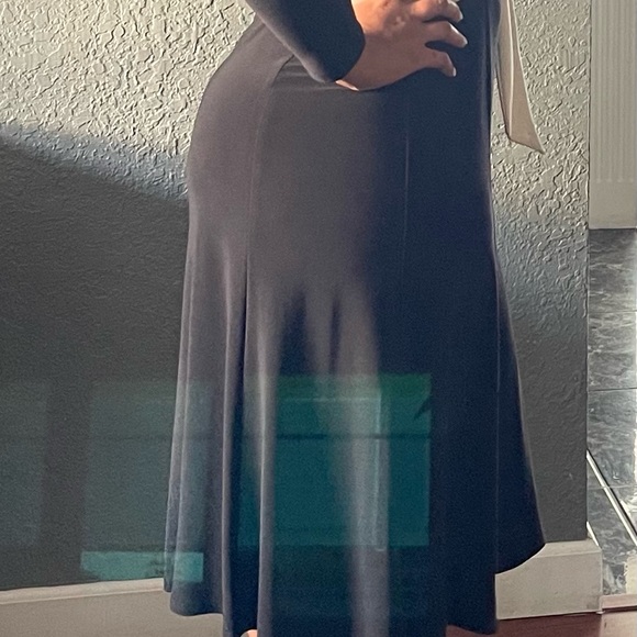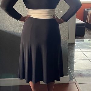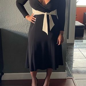 Black dress with very good stretch with cream wrap waist bow