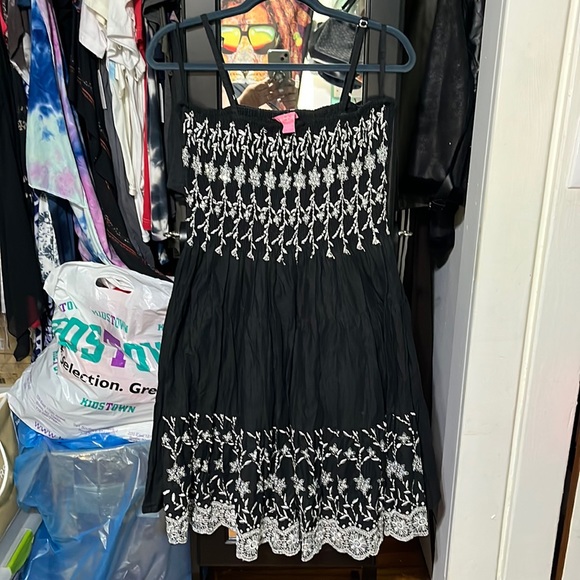 Beautiful 👗 Color- Black w/ white/silver/sequins embroidery Size- L Worn once, excellent condition!