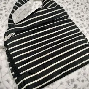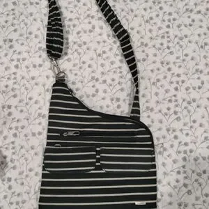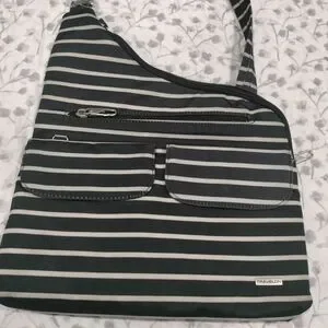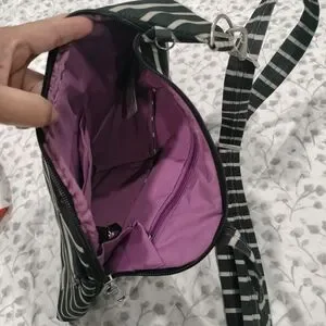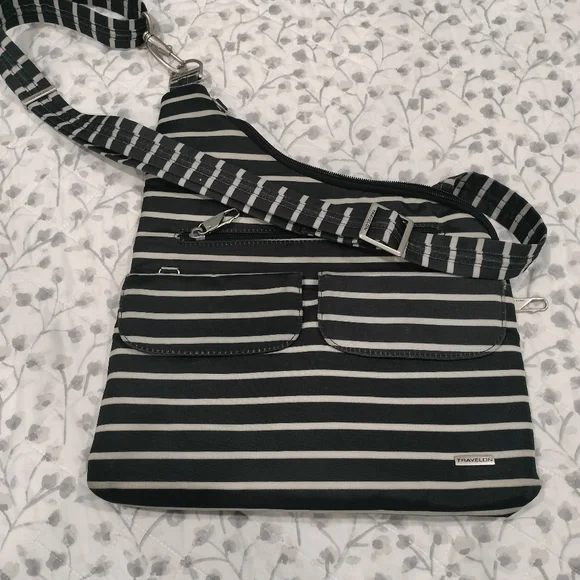 Cartera Travelon Anti theft Signature 3 Comtpartmen crossbody, straight Pocket (Black w/ White Stripe Exclusive color)