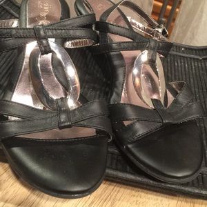 Extremely comfortable Soft brand Eurosoft black and silver 2" wedges like new! Adjusting strap!silver buckle! Very cushy! 7.5