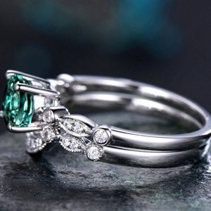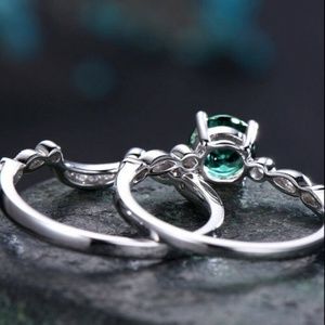 Beautiful 925 Silver set Rings Round Cut Emerald