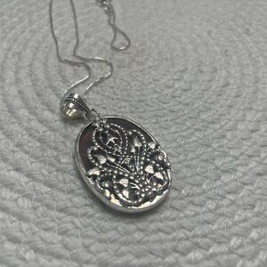 Beautiful AMETHYST with FLOWER CUT-OUT Handmade Sterling 925 Pendant on a 20" Chain (2 1/2"" x 1 1/4" Pendant) #287D