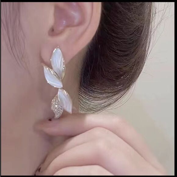 💖Beautiful Acrylic Ivory Swirl & Gold Sparkling Drop Post back Earrings💖