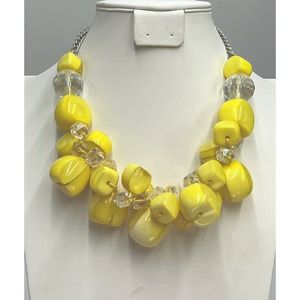 Beautiful Adjustable Yellow Cluster Statement Necklace 20.5" Silver Tone Chain