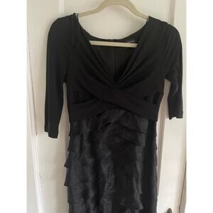 Beautiful Adrianna Papell Black Ruffled Gown Size 4