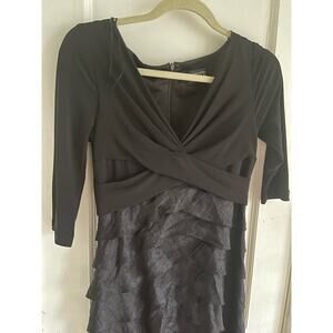 Beautiful Adrianna Papell Occasions black tiered ruffle evening gown in Size 4. In excellent condition, see pics.