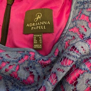 Beautiful Adrianna Papell Floral Lace Sheath Dress Pink blue Womens Sz 10 pocket