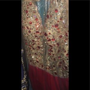This is a GORGEOUS prom dress that definitely deserves a second wear!! It's a size 10, the brand is Alyce. I paid $550 and I only wore it for a few hours. There are no alterations, but it's missing the hook at the top, it's an easy fix for such a beautiful dress. The back is out of the dress too which makes it even more stunning!! . It's a smoke free home, kept in a clear bag in closet.