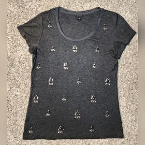 Beautiful Ann Taylor beaded jeweled charcoal gray T Shirt Med