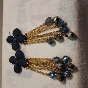 Beautiful BOHO Style Blue Flower Pierced Earrings with Dangles