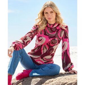 Beautiful BOSTON PROPER Jacquard Mock Neck Sweater Multicolored Long sleeve size