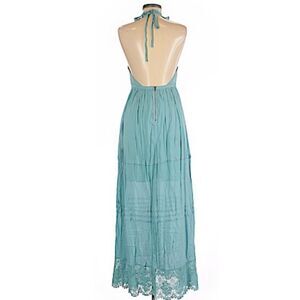 Beautiful Baby Blue Lace Halter Maxi Boho Dress