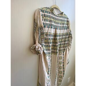 A very unique piece. Lightweight, with zippers and pulls. Has pockets. Very lovely and in great condition! Meant to be more of an oversize fit.