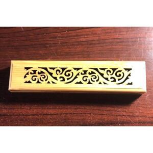 Beautifully Carved Bamboo Box measures approx. 6 inches long and just under 1 3/4 inches wide. Height is just under 1 inch. Can be used to store trinkets or also can be used for incense. Has a magnet on each end for closure.