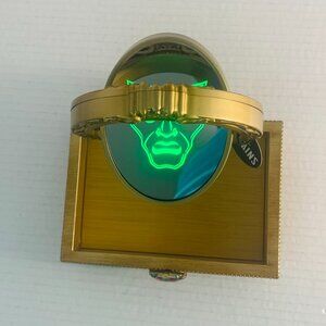 Design: Ornate gold frame with glowing green face inside the mirror, evoking the spirit of the Evil Queen’s magical mirror