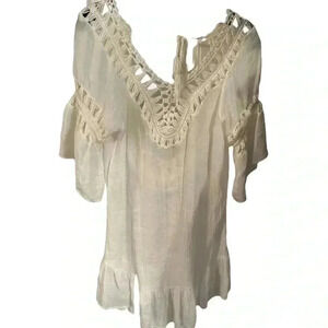 Perfect condition. Beautiful beach cover up. Deep scoop back with color pom pom accent. Great for a cruise or vacation. One size. See measurements