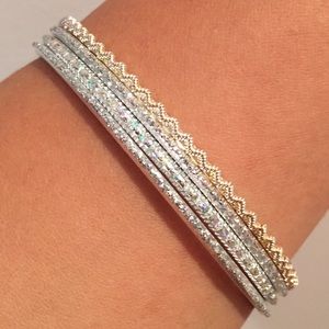 This is a set of ornate with clear beads plus silver and gold designs. Can be worn on their own, but better together a set!