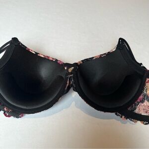 Beautiful Bebe Bra Push Up 34DD Black with pink multi color design and lace