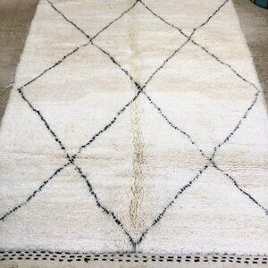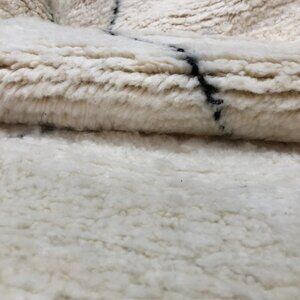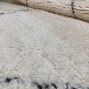 Handwoven rug from the Beni Ourain tribe in Morocc. Minimalist design and plush texture. Offered Delivery within 3 to 8 days.
