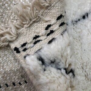 This Beni Ourain rug brings the heart of Morocco into your home. The Beni Ourain tribe, nestled in the Atlas Mountains, has a long history of weaving these beautiful rugs. Each piece tells a story, woven by skilled hands that have mastered the craft over generations. By adding this rug to your home, you're not just buying a decor item; you're embracing a piece of Moroccan tradition and artistry.