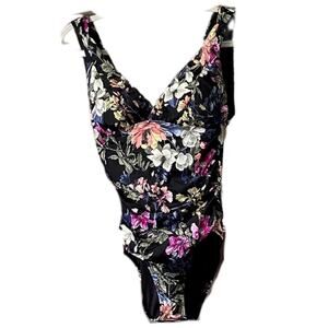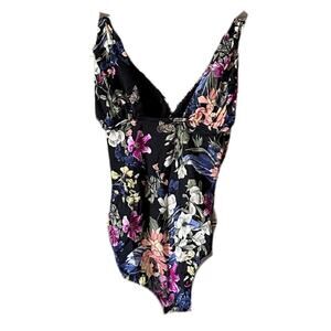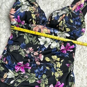 Beautiful Black Floral Modest One Piece Fun Tank Swim Wear ST21