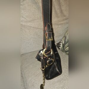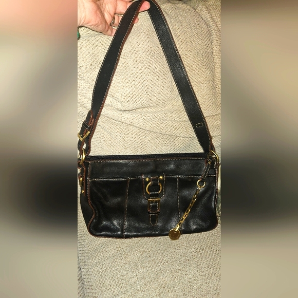 Beautiful Black Leather Etienne Aigner Shoulder Bag Brass Hardware Stunning