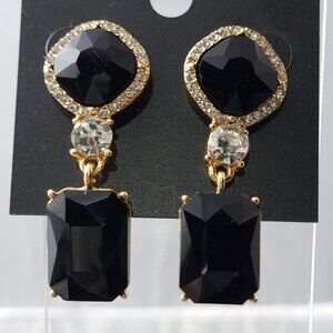 These are Saks Fifth Avenue's gorgeous black crystal dangle earrings! Gold-tone with a clear cz in the middle. Beautiful formal earrings!