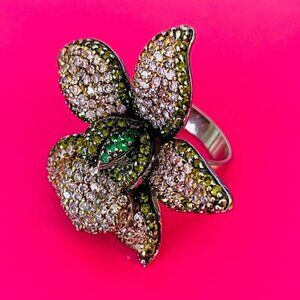 Beautiful Bling Jewelry Orchid Ring Pink Pave Crystals Size 7