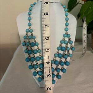 Add a pop of color to your outfit with this stunning blue beaded necklace. The necklace is 19 inches in length. This necklace is perfect for any occasion and will add a touch of beauty to any outfit. The necklace is a great addition to any jewelry collection and is sure to become a favorite. Whether you're dressing up for a special event or just want to add some flair to your everyday look, this necklace is a must-have.