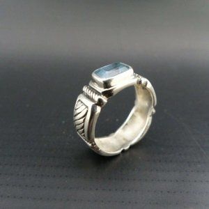 Beautiful Blue Topaz Sterling Silver Ring FANCY SHANK ring sz 7 1/4 Sz 7.25