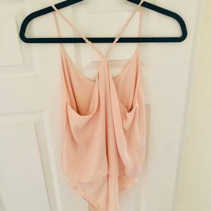 Adjustable spaghetti strap camisole bodysuit with a two button snap in the crotch.