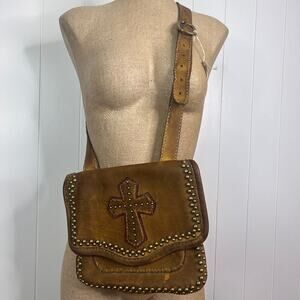 Beautiful Boho Western Heavy Leather Studded Shooting Bag NWT
