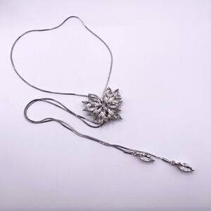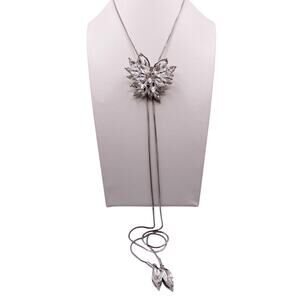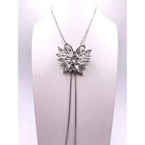 Beautiful Bolo Tie Rhinestones Silver Tone Necklace 32”