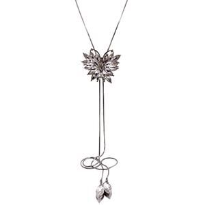 This bolo tie rhinestone necklace from 2005 is a stylish piece crafted in silver tone metal with sparkling rhinestones. Measuring 32 inches, it offers a bold and elegant design that blends western-inspired charm with timeless fashion. In excellent condition, this necklace is perfect for collectors and statement jewelry lovers.