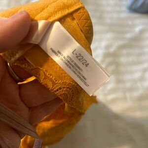 Gold halter bralette, beautiful color! Very comfy! Size L- 22/24. I wear a 42C and it fits me well.