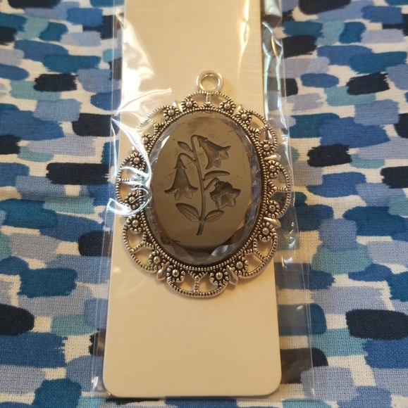 Handmade made from a vintage carved glass cabochon. Surprisingly light.