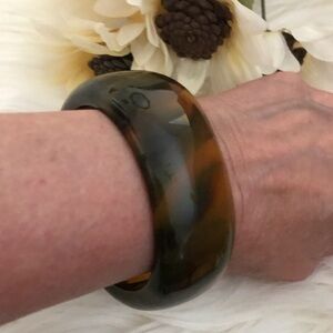 Purchased at high end estate sale, this gorgeous bangle measures 3” (shown in pictures) and 1” wide. OSFM. Reasonable offers considered.