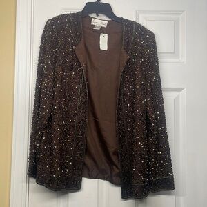 Beautiful Lawrence Kazar Brown Blazer with sequin all around, with inside clip
