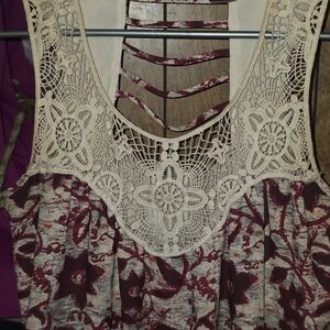 Set of 5 dresses and shirts featuring floral and paisley patterns. Includes a burgundy floral dress with lace detail and a blue paisley dress with a tie waist. look at the pictures for more description ... feel free to make an offer .. sz range from small to medium