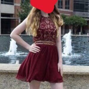Beautiful Burgundy/Maroon Embellished Dressy Short Dress-- size Juniors 7/8
