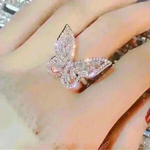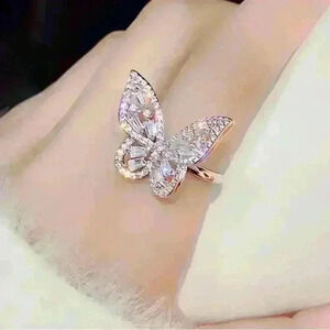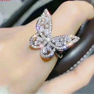 Luxury 925 Sterling Silver Butterfly Ring With Sparkling Cubic Zircon Inlaid, High-Quality Designer Jewelry
